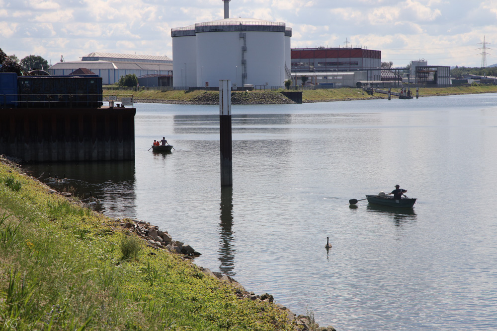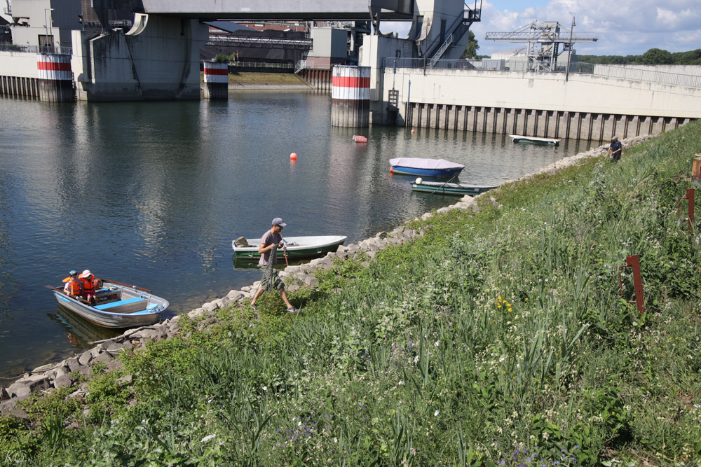 Am Samstag, dem 11. Juli, kamen nach einer längeren Ruderpartie vormittags die ersten Boote am neuen Liegeplatz an. Auch zwei „Nachwuchsangler“, vorschriftsmäßig ausgestattet mit Schwimmwesten waren mit von der Partie und genossen sichtlich den Bootsausflug mit ihrem Papa.