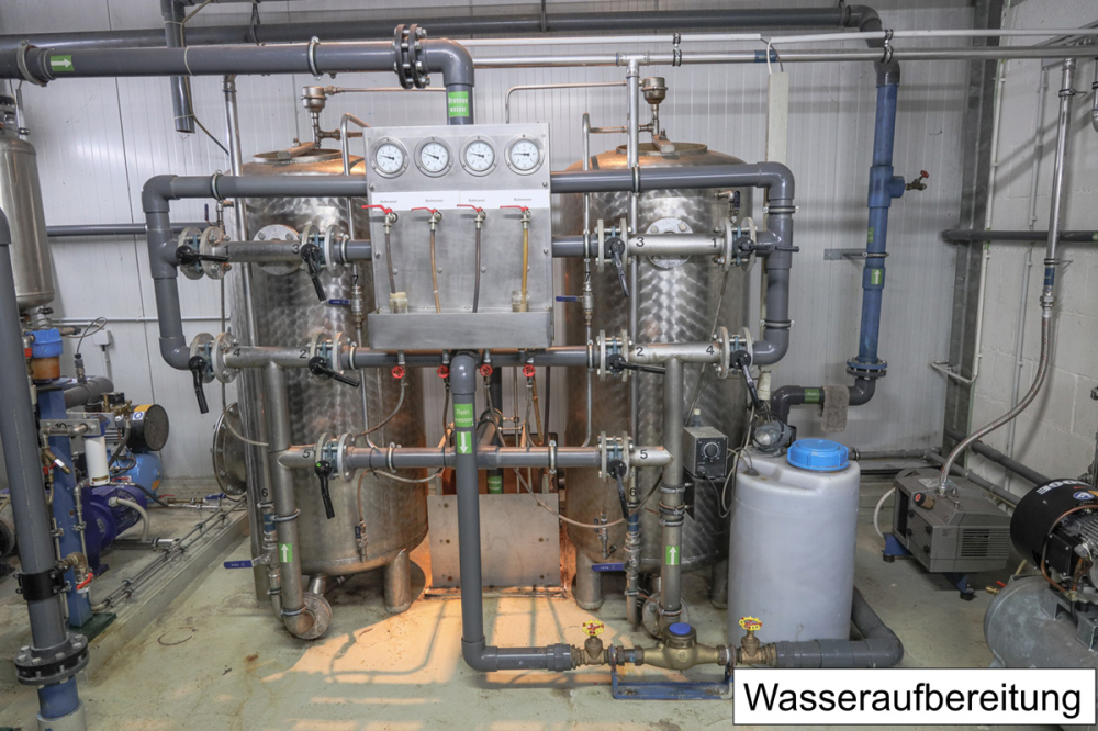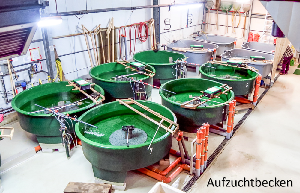 Die Wasserversorgung im Bruthaus erfolgt hauptsächlich mit Grundwasser, das mit Sauerstoff angereichert und aufwendig bis zur Trinkwasserqualität aufgearbeitet wird.