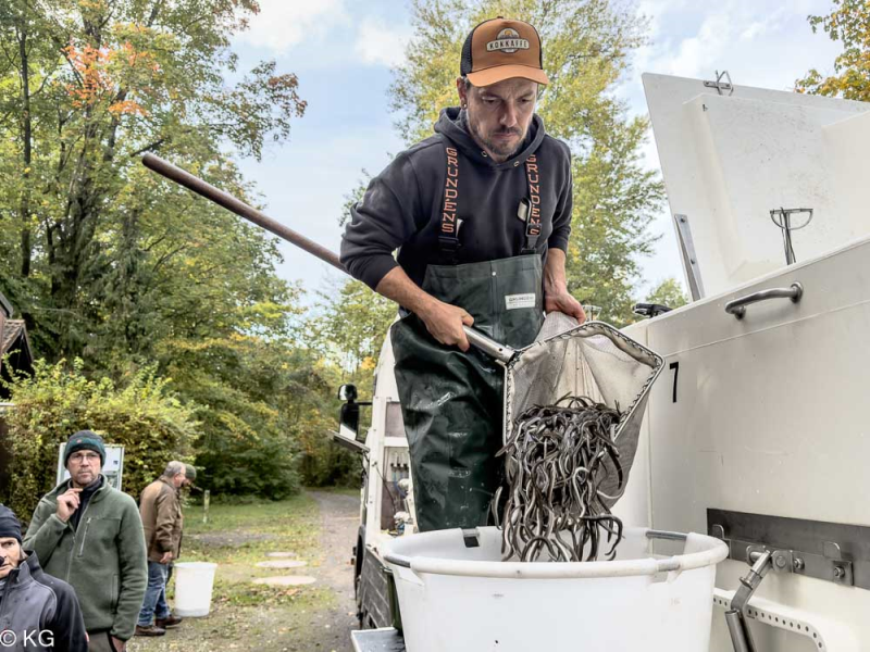 Am Mittwoch, 08. Oktober 2025 erwarteten die Verantwortlichen des AVK und benachbarter Vereine den LKW mit den Aalen beim Bruthaus des AVK.