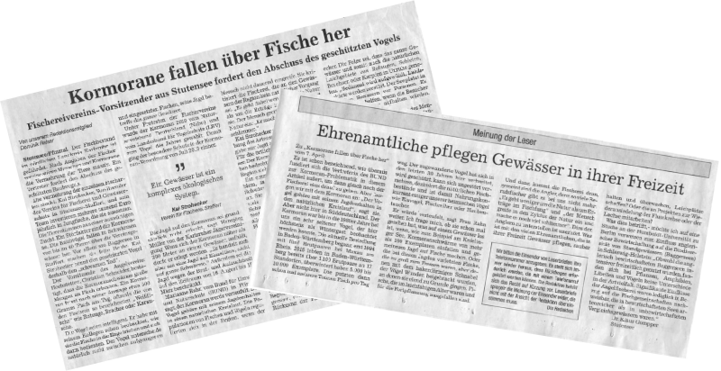 Am 7. April 2021 erschien in der BNN ein Artikel unter der Überschrift "Kormorane fallen über Fische her".