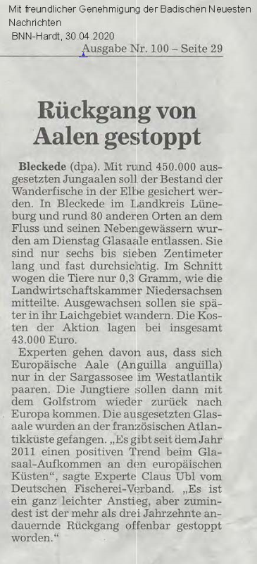 AVK-Mitglied Klaus Gompper hat dazu den Leserbrief "Ehrenamtliche pflegen Gewässer in Freizeit" geschrieben, der am 12.04.2021 in den BNN abgedruckt wurde.