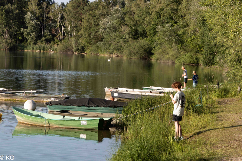Lediglich die drei über 18-Jährigen durften mit dem Boot ein Stück in den See hinausfahren und fingen dann in der Dämmerung drei Zander.